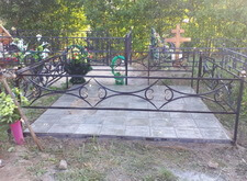 Далее мы перекрасили ограждение, установили подставку, сам памятник, прямоугольный цветник. Работу заканчивали в дождь, поэтому фотографий сухого место захоронения нет. На последнем снимке чётко видно, что даже на мокром памятнике выгравированная надпись очень легко читается.