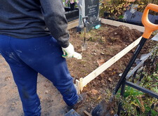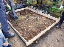 Первым делом мы вынесли с территории участка всё лишнее, а также прополи землю на могиле, одновременно с этим возводя дощатый периметр – одну из сторон будущей опалубки.